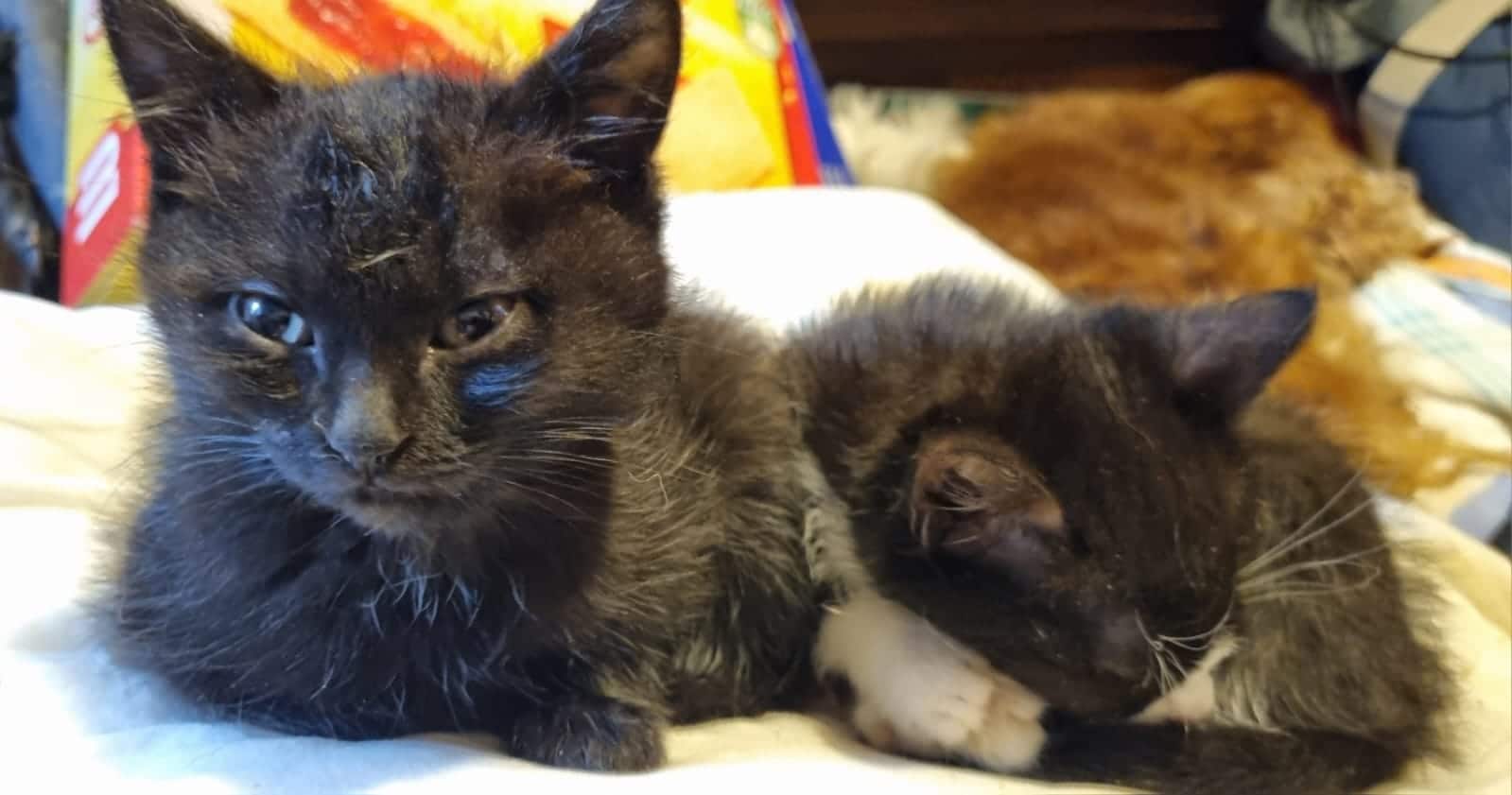Aslan et Altesse sont 2 chatons de 2 mois récupérés récemment dans une ferme.